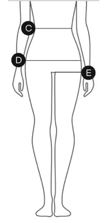 Maridenim size | Waist / C | Hip / D | Thigh / E |