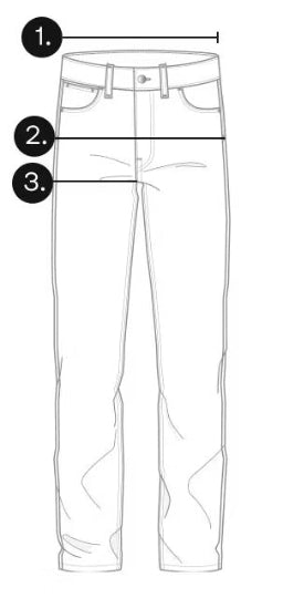Maridenim waist size | 1. Half waist | 2. Half hip curved | 3. Half thigh |